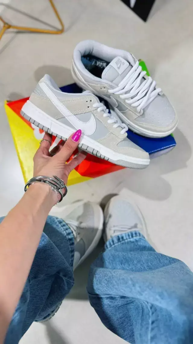 O dunk cinza com detalhes em couro é o pisante ideal pra quem quer sair da mesmise e se jogar no estilo. Além de confortável ele ainda é de baixa manutenção de limpeza